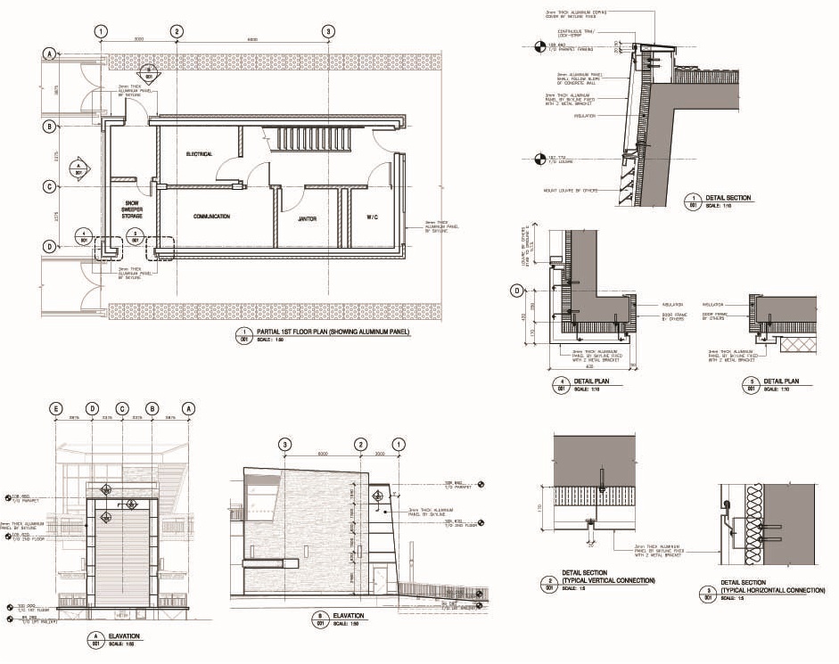 We can count aluminum panels, sidings, EIFS and the others under the wall cladding shop drawings. It is really important to have all joining details when you deal with the exterior side of the wall. We are ready to show all your system against the water and the hard weather conditions.We also provide 3D drawings and rendering images for the custom designed elevations.